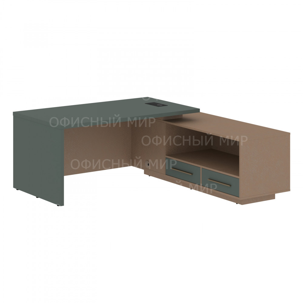 Стол руководителя с тумбой VCT 1919(R) Нефрит/Бронза браш/Кобра 1900х1900х750 VELION