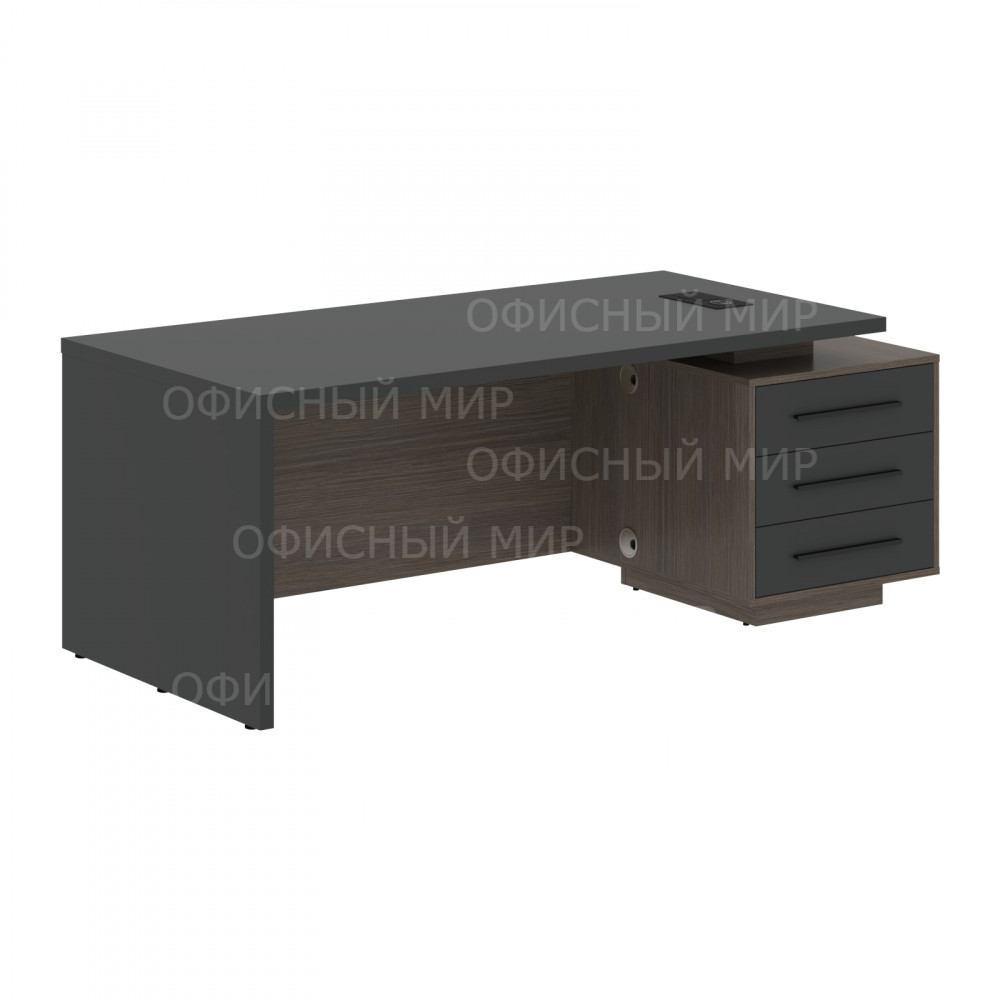 Стол руководителя с тумбой VCT 2090(R) Яшма черный/Черный матовый/Дуб Сильвер 2000х900х750 VELION