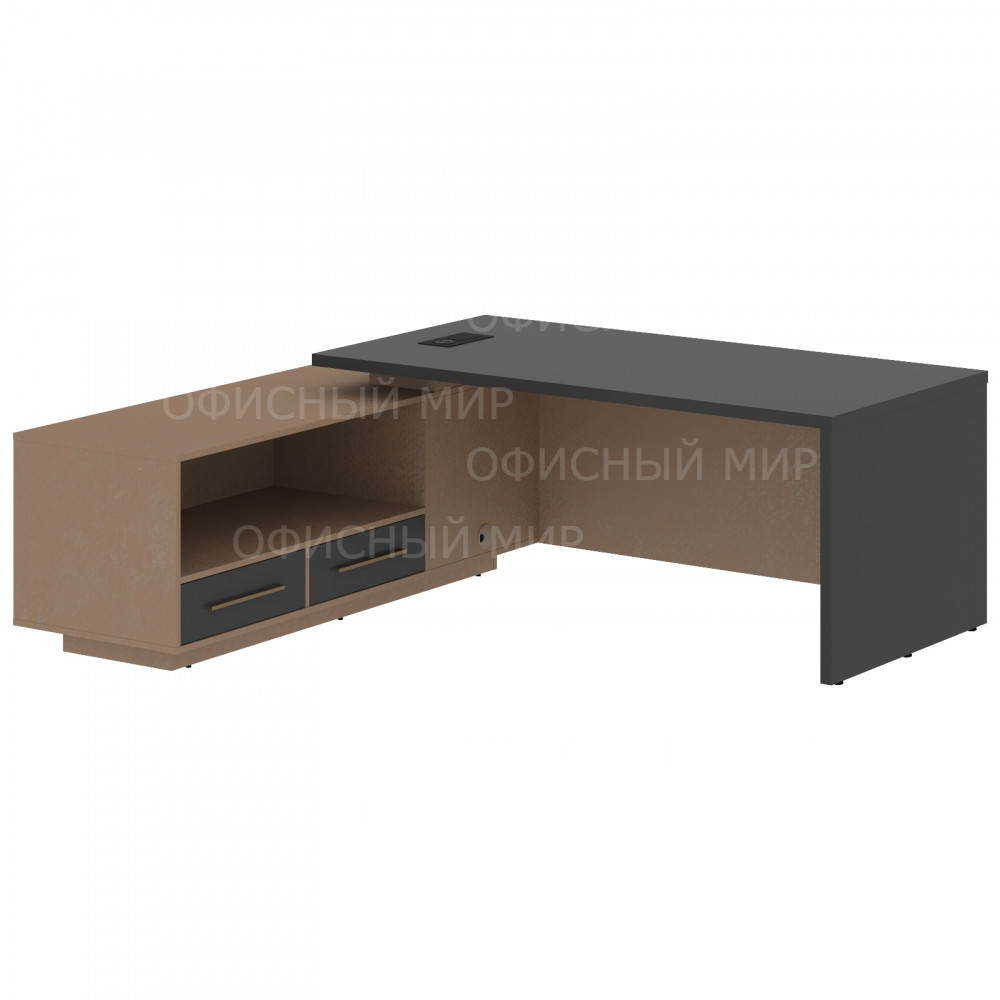 Стол руководителя с тумбой VCT 2119(L) Яшма черный/Бронза браш/Кобра 2100х1900х750 VELION