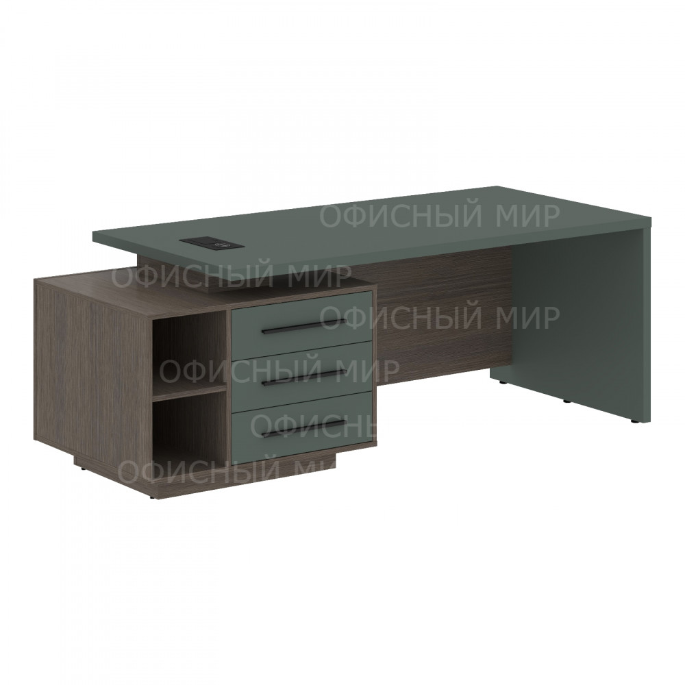 Стол руководителя с тумбой VCT 2190(L) Нефрит/Черный матовый/Дуб Сильвер 2100х900х750 VELION