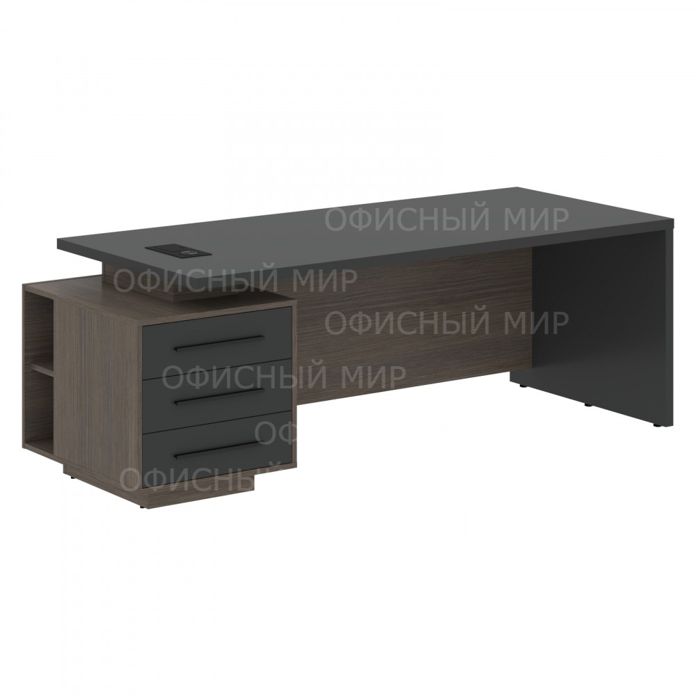 Стол руководителя с тумбой VCT 2290(L) Яшма черный/Черный матовый/Дуб Сильвер 2200х900х750 VELION