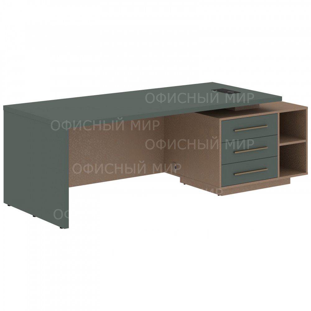 Стол руководителя с тумбой VCT 2390(R) Нефрит/Бронза браш/Кобра 2300х900х750 VELION