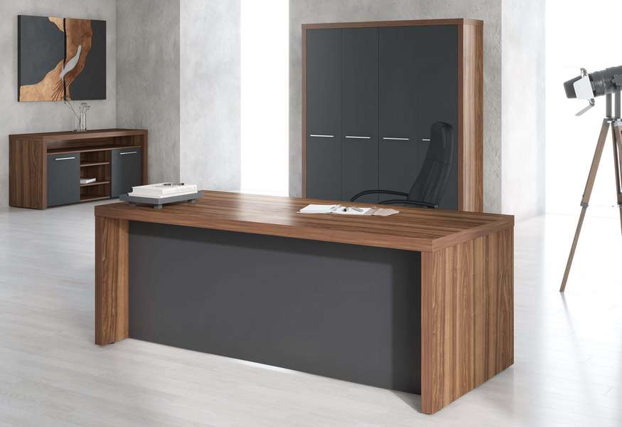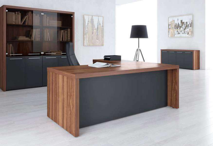 Кабинет, сочетающий в себе современные минималистичные формы и солидность традиционной классической мебели. Столешница и опоры толщиной 54 мм. Массивные, основательные. Декор - классический орех с яркой текстурой - сама респектабельность. А прямые, рубленые формы позволяют использовать ZENN и в традиционных кабинетах, и в современных открытых офисах. И там, и там он будет великолепен.