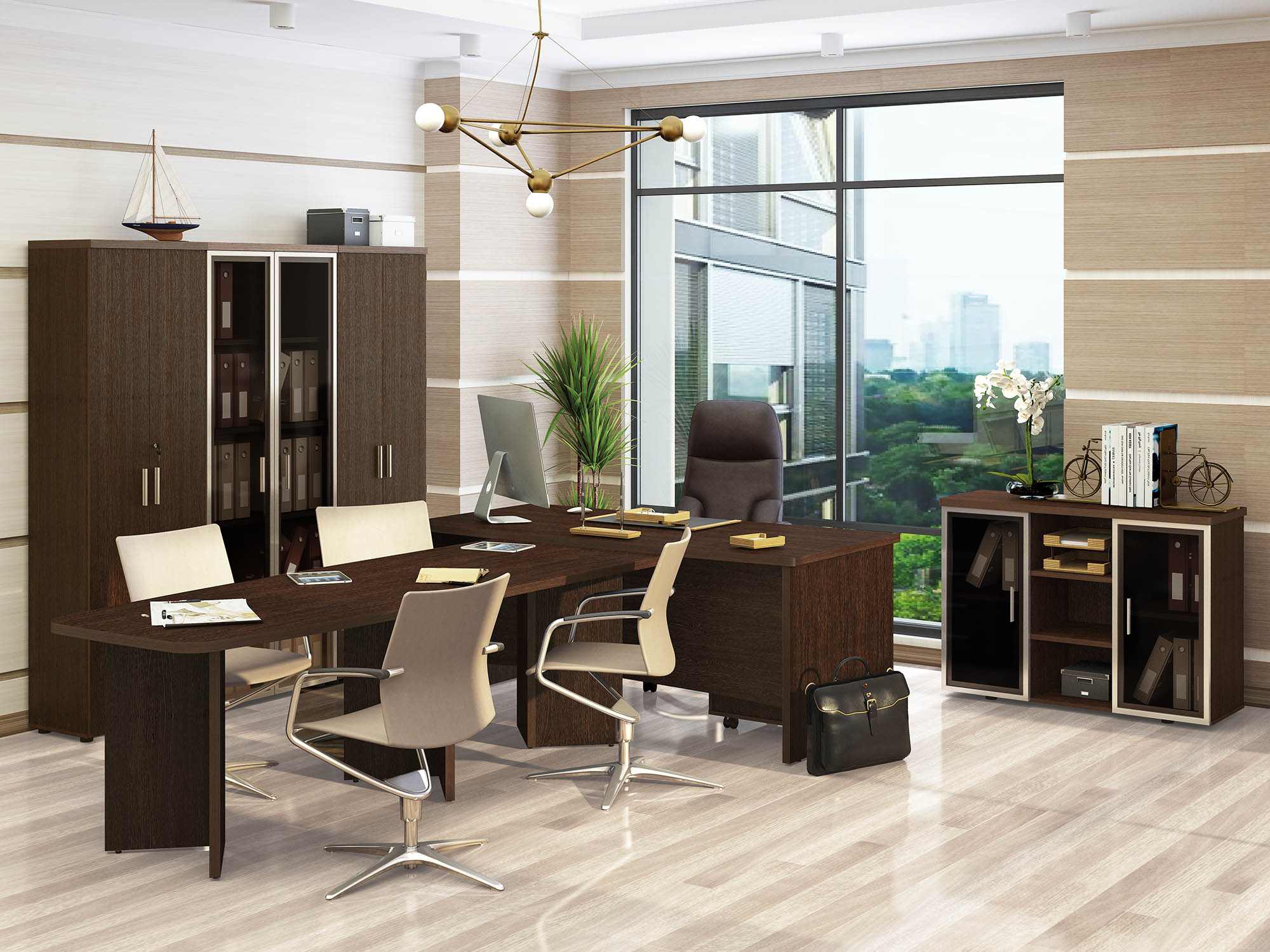 Рационально продуманный модульный ряд включает изделия, необходимые для организации рабочего пространства успешного руководителя.