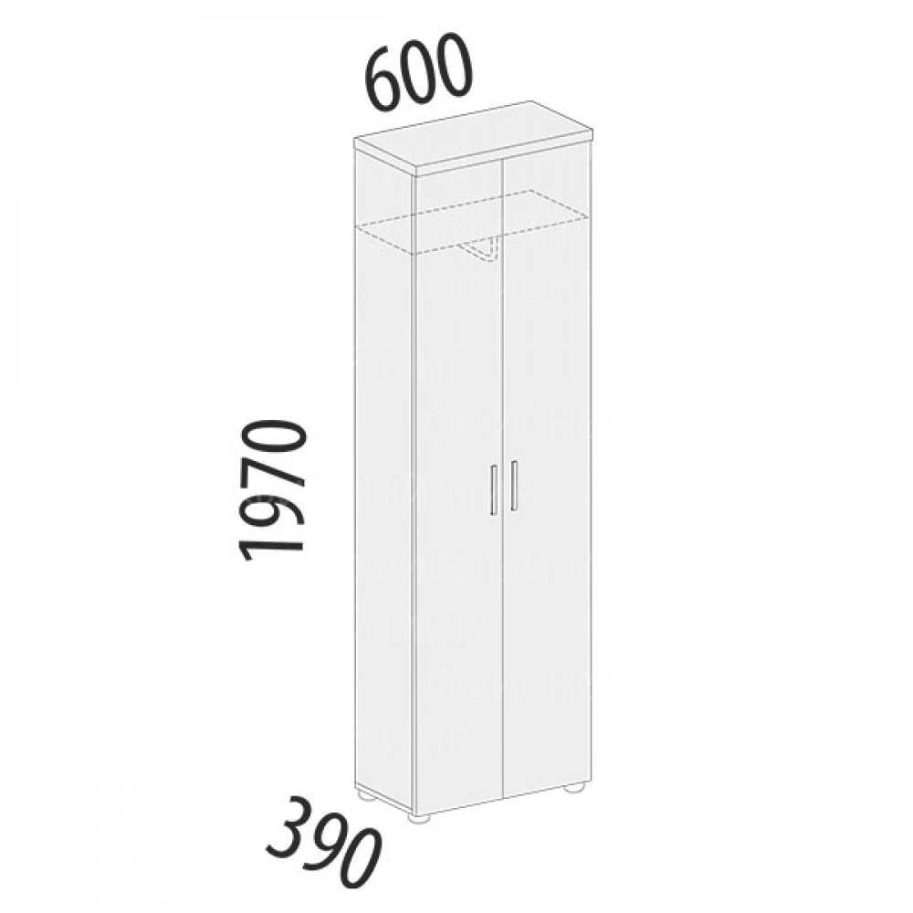 Шкаф для одежды «Цезарь 21.11» является частью модульного набора для офиса «Цезарь». Внутри установлена штанга для хранения одежды на плечиках. Регулируемые по высоте ножки позволяют установить модуль, скорректировав неровности пола. В изделии используются межсекционные стяжки, а так же демпферы для мягкого закрывания дверей. Основные материалы: ЛДСП 16, 22 и 32 мм