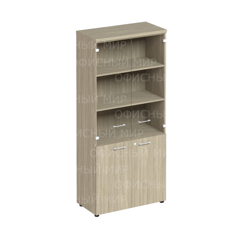 Шкаф для документов со стеклянными прозрачными дверьми дуб скандинавский ПТ 983 ДК