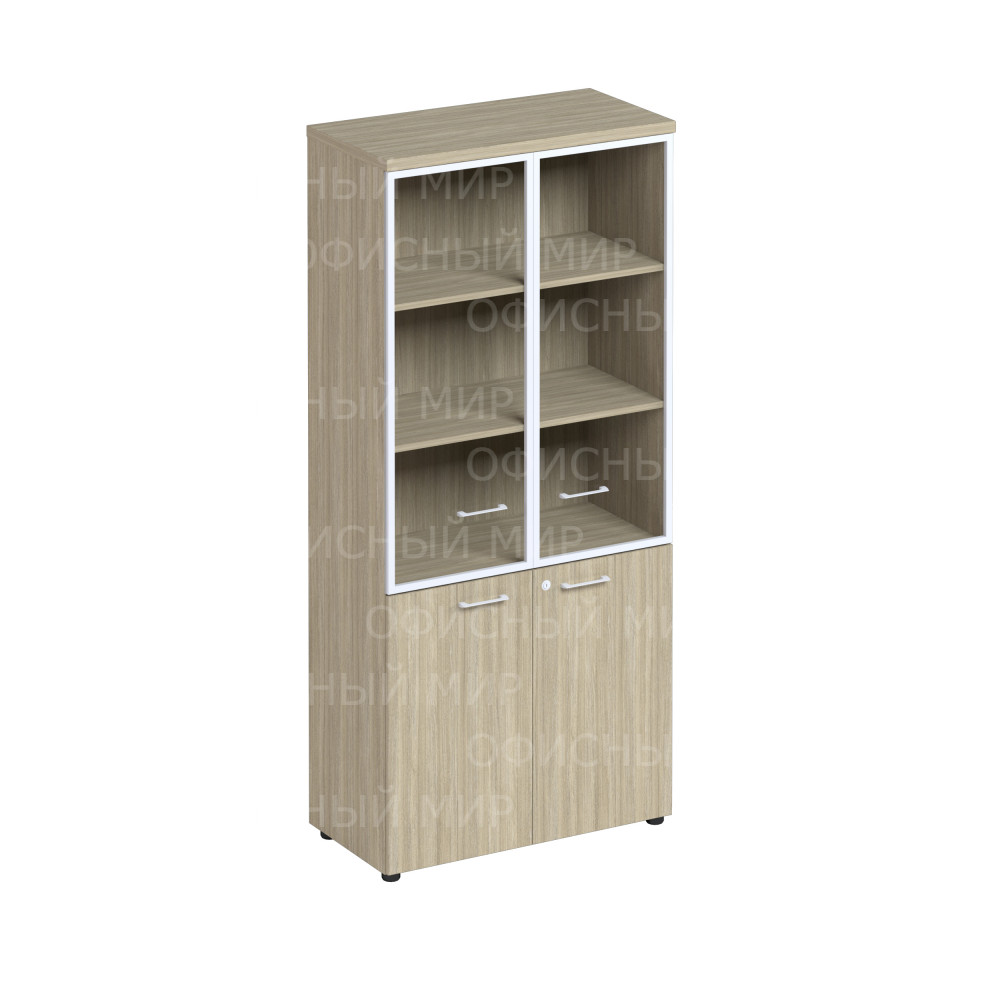 Шкаф для документов со стеклянными прозрачными дверьми в рамке дуб скандинавский ПТ 0783 ДК