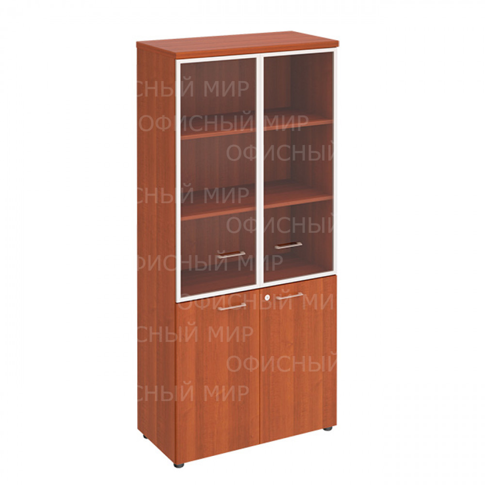 Шкаф для документов со стеклянными прозрачными дверьми в рамке миланский орех ПТ 0783 ОМ