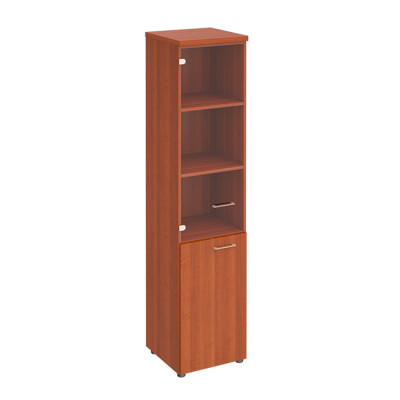 Шкаф для документов узкий со стеклянной прозрачной дверью миланский орех ПТ 986 ОМ