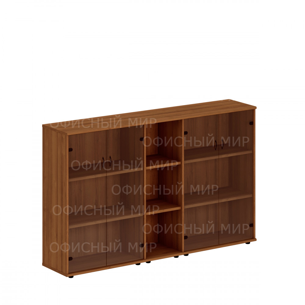 Шкаф комбинированный средний (стекло + стеллаж узкий + стекло) темный орех Исп.27