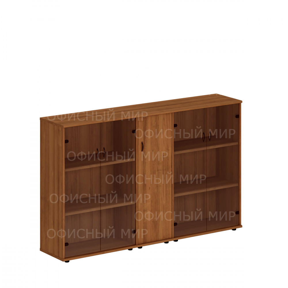 Шкаф комбинированный средний (стекло + закрытый узкий + стекло) темный орех Исп.28