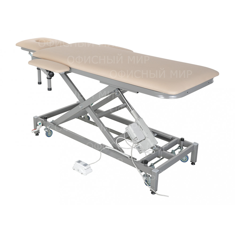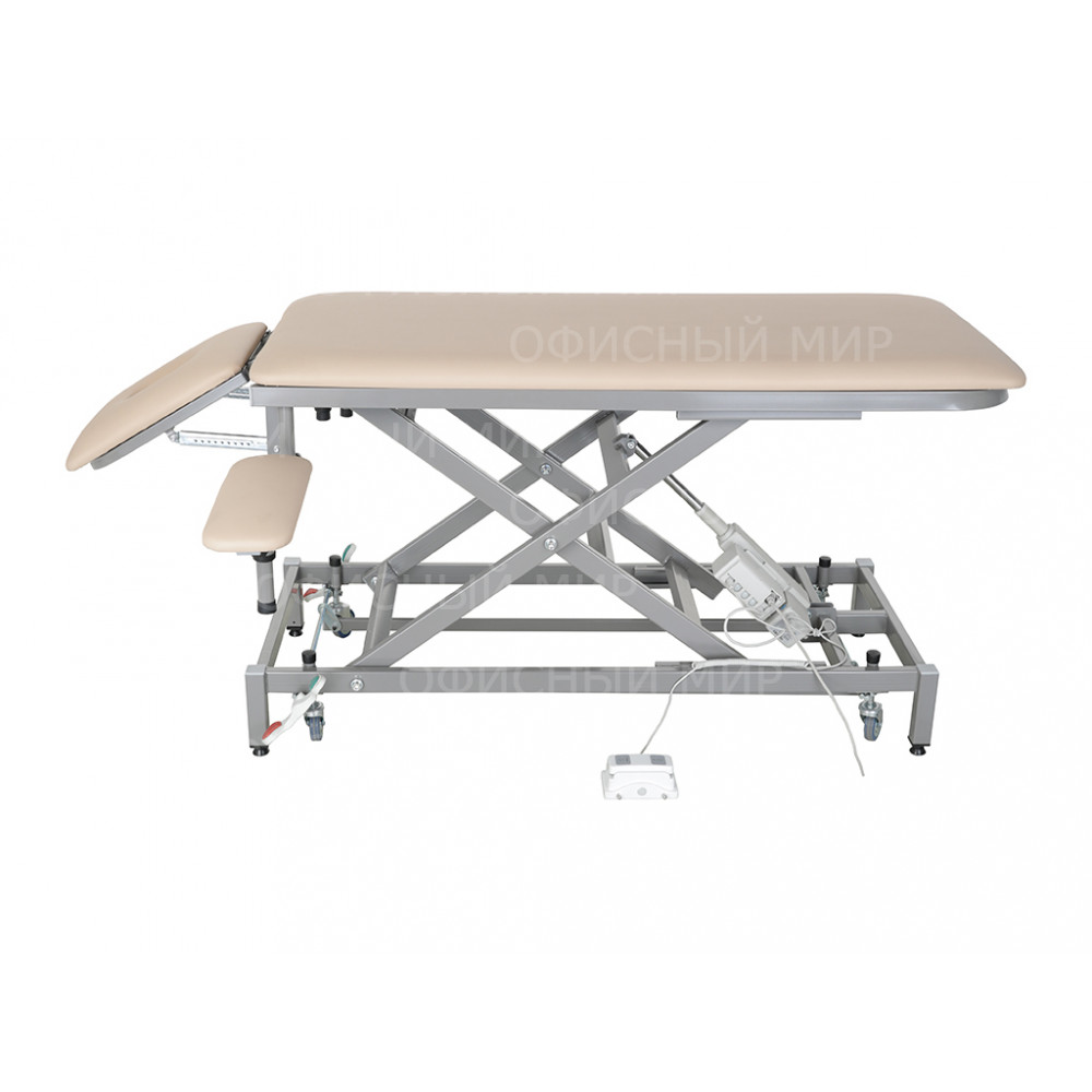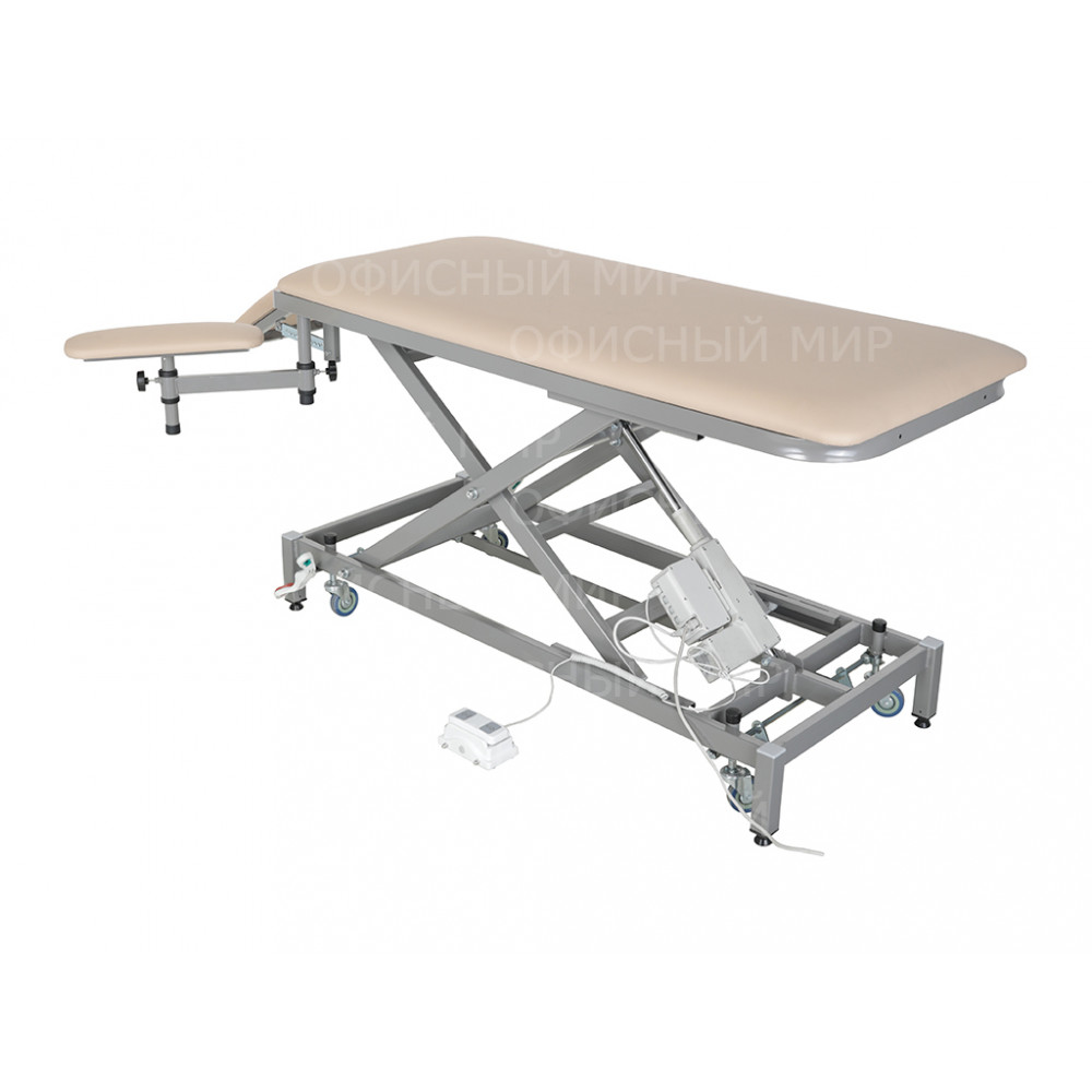 регулировка высоты осуществляется с помощью педали и электропривода. Диапазон регулировки от 625 до 885 мм