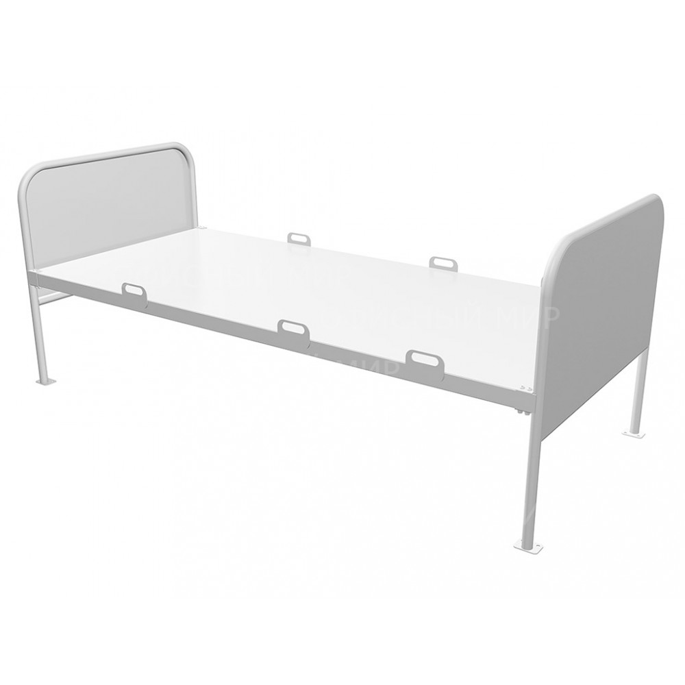 Кровать предназначена для эксплуатации в психоневрологических диспансерах и в спецучреждениях. Кровать состоит из подматрацной рамы и двух спинок и представляет собой разборную конструкцию, элементы которой выполнены сварными из стального профиля с полимерно-порошковым покрытием.