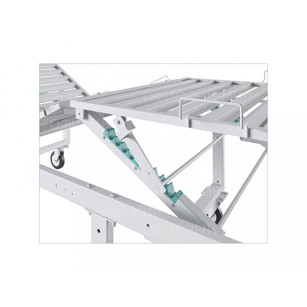 трехсекционное ложе с механической регулировкой секций (спинной, ножной и тазобедренной), каркас изготовлен из профильной трубы прямоугольного сечения, покрыт эпоксидно-порошковой краской;