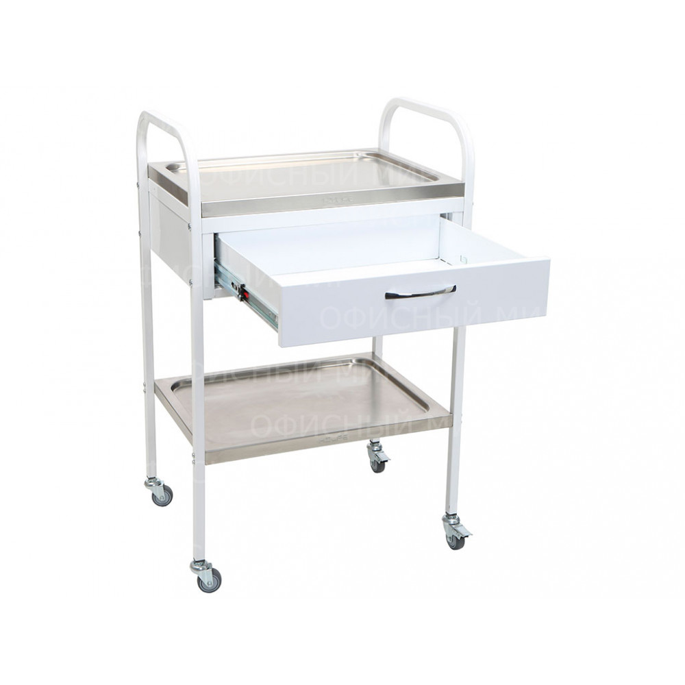 • столик процедурный имеет 4 колеса из немаркой резины, D= 50 мм. Два колеса снабжены тормозом