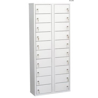 Двадцать запираемых ячеек. Каждое отделение закрывается своим индивидуальным ключом.