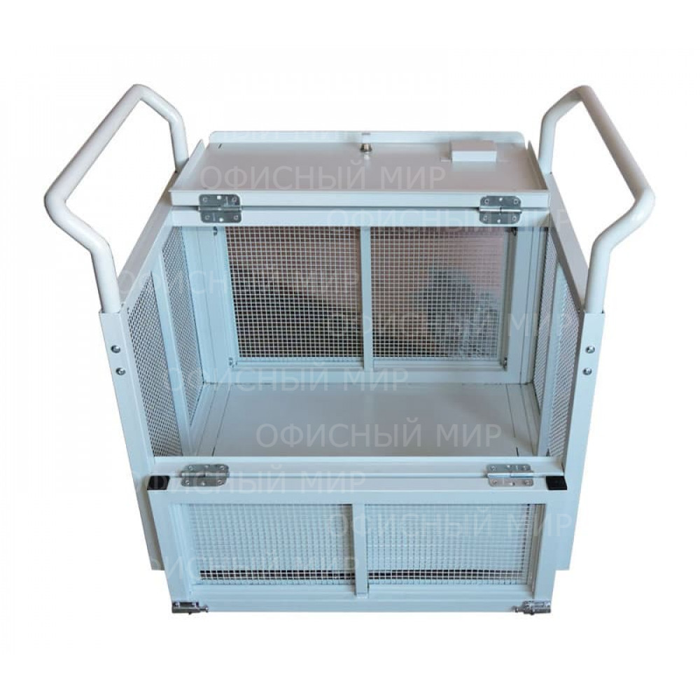 Профильная труба 30х30х1,5мм, сталь листовая 1мм (каркас дна, передняя стенка, верхняя крышка), сталь листовая 2мм (верхняя дверца). Вертикальные усилители на сетчатые части (боковые стенки, задняя стенка, передняя дверца) — профильная труба 20х20х1,5мм. Сетка с ячейкой 10 х 10 мм, диаметр прутков 1,4 мм.