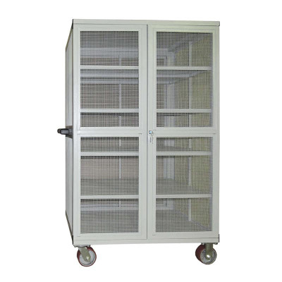 Материалы корпуса: Профильная труба 30х30х1,5мм, сталь листовая 1мм (каркас дна, полки, верхняя крышка), сталь листовая 1,5мм (элементы дверей). Вертикальные усилители на сетчатые части (боковые стенки, задняя стенка) — профильная труба 20х20х1,5мм. Сетка с ячейкой 10 х 10 мм, диаметр прутков 1,4 мм. Конструкция тележки – сборная, из семи узлов, (каркас дна, боковые стенки, каркас крышки, задняя стенка, двери), узлы сварные, собирается на винтах М8. Полки сварные, крепятся на болтах М6. ТСБ-1 имеет три нерегулируемые полки. ТСБ-2 — 4 полки.
