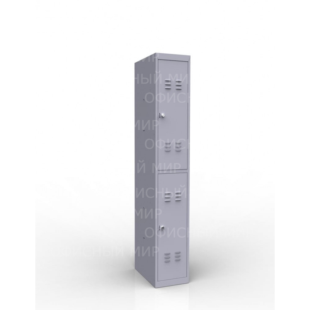 односекционный металлический шкаф для одежды отличается наличием двух ячеек с индивидуальными замками сборно-разборная модульная конструкция, позволяющая поставлять Заказчику продукцию как собранном, так и в разобранном виде двери шкафа сверху и снизу имеют вентиляционные отверстия-жалюзи, оснащаются дополнительными ребрами жесткости двери шкафа навешиваются на внутренние петли из высокопрочного стеклонаполенного полиамида, гарантирующие не менее 50 000 открываний. Имеют универсальную конструкцию, позволяющую менять их положение. вся линейка шкафов окрашивается порошковой краской светло-серого цвета RAL 7035 производства компании Teknos (Финляндия).