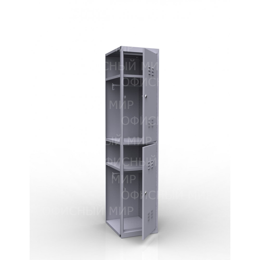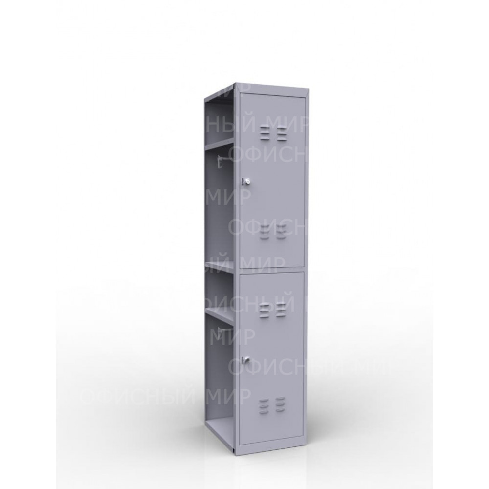 Особенности модели: отсутствие боковой стенки односекционный металлический шкаф для одежды отличается наличием двух ячеек с индивидуальными замками сборно-разборная модульная конструкция, позволяющая поставлять Заказчику продукцию как собранном, так и в разобранном виде двери шкафа сверху и снизу имеют вентиляционные отверстия-жалюзи, оснащаются дополнительными ребрами жесткости двери шкафа навешиваются на внутренние петли из высокопрочного стеклонаполенного полиамида, гарантирующие не менее 50 000 открываний. Имеют универсальную конструкцию, позволяющую менять их положение. вся линейка шкафов окрашивается порошковой краской светло-серого цвета RAL 7035 производства компании Teknos (Финляндия).