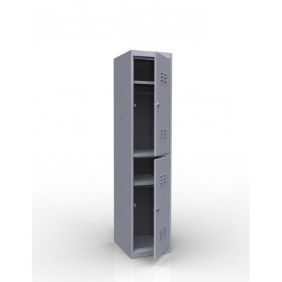 Особенности модели: односекционный металлический шкаф для одежды отличается наличием двух ячеек с индивидуальными замками сборно-разборная модульная конструкция, позволяющая поставлять Заказчику продукцию как собранном, так и в разобранном виде двери шкафа сверху и снизу имеют вентиляционные отверстия-жалюзи, оснащаются дополнительными ребрами жесткости двери шкафа навешиваются на внутренние петли из высокопрочного стеклонаполенного полиамида, гарантирующие не менее 50 000 открываний. Имеют универсальную конструкцию, позволяющую менять их положение. вся линейка шкафов окрашивается порошковой краской светло-серого цвета RAL 7035 производства компании Teknos (Финляндия).