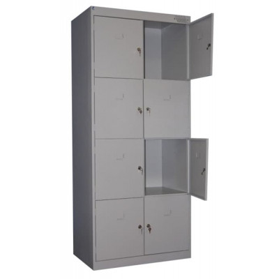 Шкаф для сумок ШРК-28-600 состоит из двух секций, восьми ячеек. Комплектуется восемью замками повышенной секретности. Окрашен порошковой (полимерной) краской. Цвет светло-серый RAL 7035. Шкаф сборный, собирается при помощи металлических заклепок и заклепочника, поставляется в разобранном виде, упакованный в гофрокартон