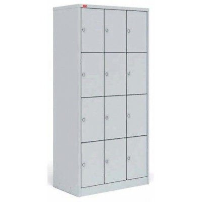 Металлический разборный шкаф из двенадцати секций. Шкафы ШРМ - 312 используются для хранения пакетов и сумок в крупных магазинах, личных вещей в раздевалках спортклубов и фитнес-центров.