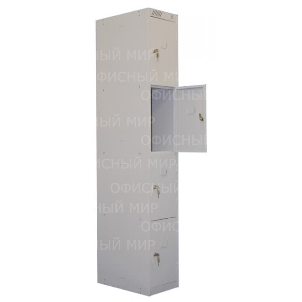 Модульный шкаф для сумок ШРС-14-300 состоит из одной секции, четырех ячеек. Комплектуется четырьмя замками повышенной секретности. Окрашен порошковой (полимерной) краской, цвет светло-серый RAL 7035. Шкаф сборный, собирается при помощи винтов и саморезов, поставляется в разобранном виде, упакованный в гофрокартон.