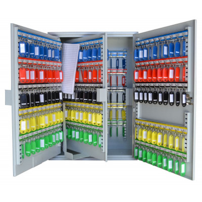 Шкаф металлический для хранения 300 ключей. Комплектуется замком. На задней стенке отверстия для крепления к стене, крепеж поставляется в комплекте с ключницей.