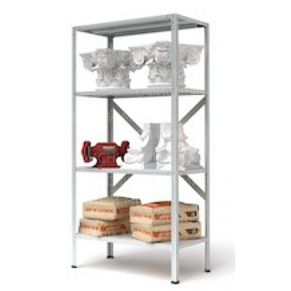 Данный стеллаж комплектуется четырьмя полками размером 1000х600 мм, четырьмя стойками высотой 2200 мм, четырьмя металлическими подпятниками, шестнадцатью уголками жесткости, 72 комплектами крепежа.