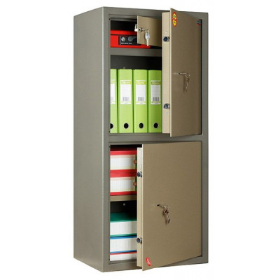 Сейф офисный, производство - Россия. Устойчивость к взлому Н0 (ниже нулевого) по ГОСТ Р 50862-2005. Корпус сейфа выполнен из стали толщиной 2 мм, дверь 5мм. Замок ключевой Kaba Mauer (Германия). Защита замка от высверливания. Два отделения, в верхнем трейзер (внутренний ящик с замком), в нижнем 1 полка. Возможно крепление к полу и к стене (наличие отверстия в нижней и тыльной части), анкерный болт в комплекте.. Окрашен порошковой краской, цвет: оттенок коричневого с эффектом молотковой эмали. Гарантия 5 лет.