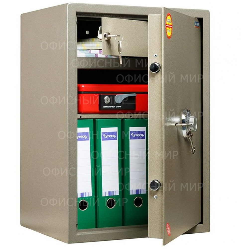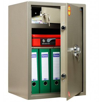 Сейф офисный, производство - Россия. Устойчивость к взлому Н0 (ниже нулевого) по ГОСТ Р 50862-2005. Корпус сейфа выполнен из стали толщиной 2 мм, дверь 5мм. Замок механический кодовый (код фиксированный без возможности смены) Royallocks (Тайланд) и ключевой Kaba Mauer (Германия). Защита замка от высверливания. Внутри сейфа трейзер (внутренний ящик с замком) и 1 полка. Возможно крепление к полу и к стене (наличие отверстия в нижней и тыльной части). Окрашен порошковой краской, цвет: оттенок коричневого с эффектом молотковой эмали. Гарантия 5 лет.
