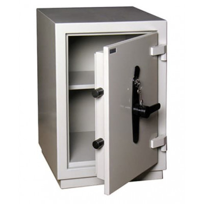 Сейф представляет собой сварную металлическую конструкцию, состоящую из наружного и внутреннего корпусов. Межстенное пространство корпуса и двери заполнено специальными составами, материалами и конструктивными элементами, обеспечивающими необходимую для данного изделия взломостойкость. Внутри сейфа располагается одна съемная полка. В дне сейфа предусмотрено отверстие Ø11 мм для возможности анкерного крепления его к полу. Дверь сейфа оборудована запорным механизмом с 2-х сторонней ригельной системой запирания (по 2 ригеля Ø28 мм вправо/влево), который блокируется ключевым сейфовым замком класса «А» фирмы «CAWI» или «MAUER» производства Германии. Запорный механизм приводится в действие при помощи ручки. Чтобы открыть сейф необходимо: вставить ключ в замочную скважину, открыть замок и повернуть ручку на 90°. Закрывать в обратном порядке. Петли сейфа наружные, открывание двери – на 180°.