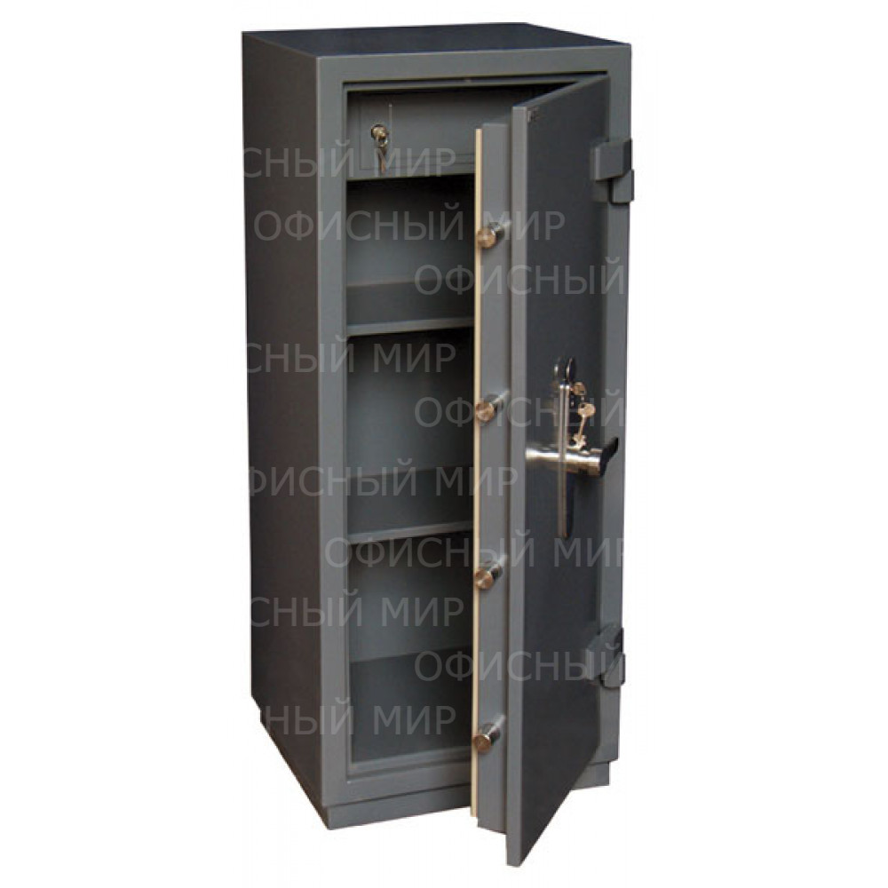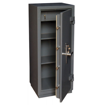 Внутри сейфа располагается отсек ограниченного доступа (трейзер), запираемый на замок «почтового» типа и 2полки. В дне сейфа предусмотрено отверстие Ø11 мм для возможности анкерного крепления его к полу. Дверь сейфа оборудована запорным механизмом с 2-х сторонней ригельной системой запирания (4 ригеля + пассивный П-образный ригель со стороны петель), который блокируется ключевым сейфовым замком класса «А» фирмы «CAWI» или «MAUER» производства Германии. Запорный механизм приводится в действие при помощи ручки. Чтобы открыть сейф необходимо: вставить ключ в замочную скважину, открыть замок и повернуть ручку на 90°. Закрывать в обратном порядке. Петли сейфа наружные, открывание двери – на 180°.