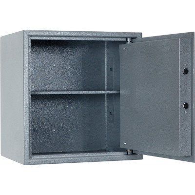 Сейф односекционный, оснащен съемной полкой. В двери установлен ключевой 8-ми сувальдный замок с ригельной системой запирания. Диаметр ригеля 20 мм.