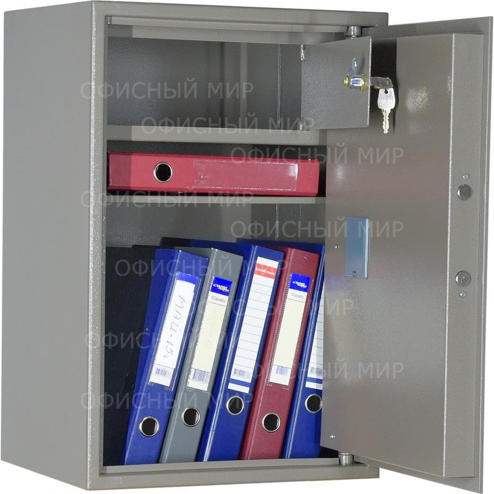 Сейф односекционный, оснащен съемной полкой. В двери установлен электронный кодовый замок.