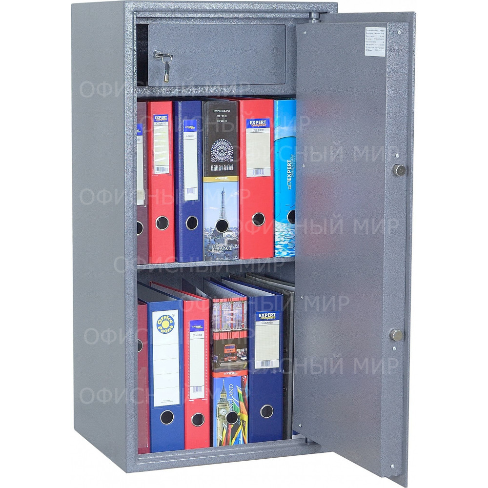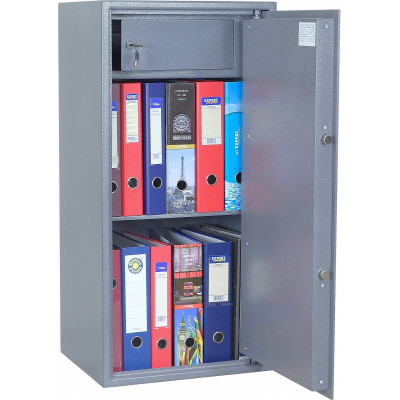 Сейф односекционный, оснащен съемной полкой. В двери установлен ключевой 8-ми сувальдный замок с ригельной системой запирания. Диаметр ригеля 20 мм.