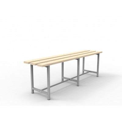 Скамья изготовлена на металлическом каркасе из трубы квадратного сечения 25х25, покрытым порошковой полимерной краской серого цвета. Сиденье доска шлифованная, покрыта лакосодержащим составом. Изделие предназначено для установки в раздевалках, спортивных школах и дошкольных учреждениях. Поставляется в разобранном виде, в компактной картонной таре.