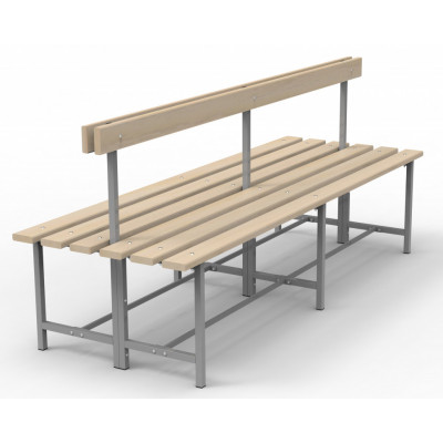 Скамья изготовлена на металлическом каркасе из трубы квадратного сечения 25х25, покрытым порошковой полимерной краской серого цвета. Сиденье доска шлифованная, покрыта лакосодержащим составом. Изделие предназначено для установки в раздевалках, спортивных школах и дошкольных учреждениях. Поставляется в разобранном виде, в компактной картонной таре.