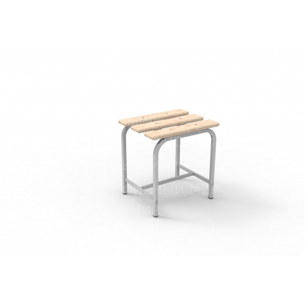 Каркас скамьи изготовлен из профильной трубы 20х20мм. Нижняя перемычка сварная из профиля 20х10мм. Доска шлифованная, покрыта лакосодержащим составом. Скамья предназначена для установки под нишу гардеробного шкафа, а так же может применяться как отдельное сидячее место внутри помещения(раздевалки, спортивные школы и дошкольные учреждения). Поставляется в разобранном виде в картонной упаковке.