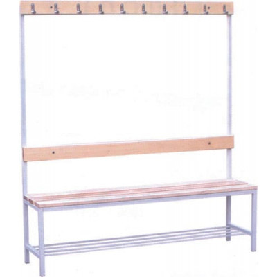 Предназначена для установки в спортивных раздевалках. 10 крючков для одежды. Материал скамьи – сосна. Каркас выполнен из профильной трубы и окрашен порошковой краской. Стандартный цвет каркаса – серый.