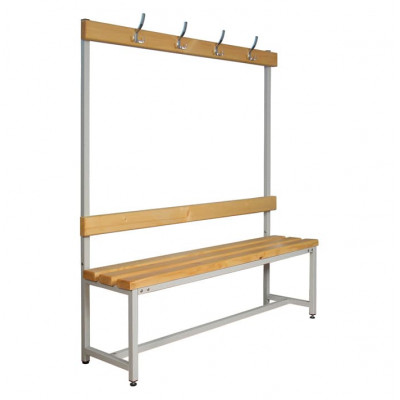 Каркас — из крепкого стального прямоугольного профиля 30х30 мм. Окрашен порошковой краской RAL 7035. Все элементы отличаются надёжностью, скамейки практичны и неприхотливы в эксплуатации. Полимерное защитно-декоративное покрытие, особо прочное, коррозионно-стойкое, устойчиво к перепадам температуры. Сиденье скамьи — три массивные доски (древесина хвойных пород толщиной 30 мм), пропитанные антисептиком и покрытые водостойким лаком. Скамейка стойка к влаге, и большим нагрузкам, это обусловливает широкий диапазон условий её эксплуатации. Скамья — разборная, конструкционные элементы её скрепляются с помощью винтов и стяжек М6. На неровной поверхности скамья легко выставляется ровно благодаря возможности плавной регулировки ножек по высоте.