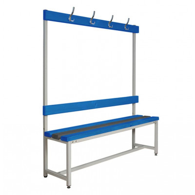 Недорогие, крепкие скамейки. Каркас выполнен из металлического профиля 30*30 мм окрашенного серой порошковой краской серого цвета. Сиденье скамьи гардеробной это три массивных влагостойких пластиковых бруса. Скамья поставляется в разобранном виде. Ножки оснащены регулируемыми по высоте опорами.