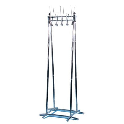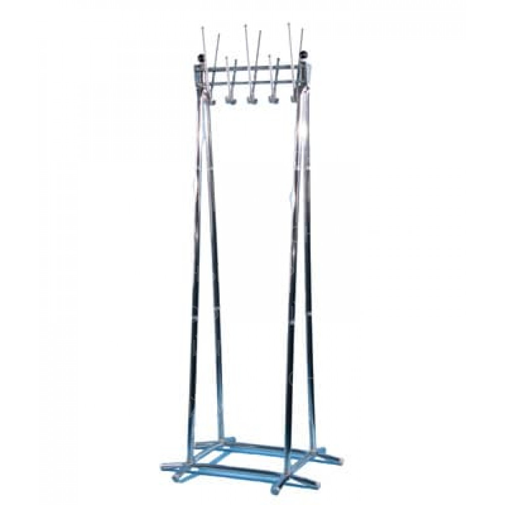 Групповая вешалка на 10 двойных крючка. Вешалка выполнена из оцинкованной стали с полимерным покрытием. Крючки вешалки выполнены из трубы диаметром 10 мм. Вешалка поставляется в разобранном виде. Базовый цвет: хром.