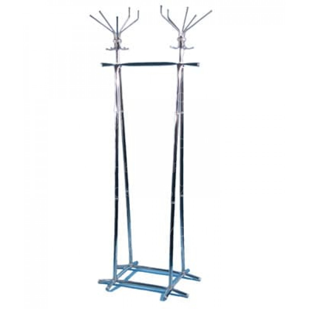 Групповая вешалка под плечики. Вешалка выполнена из оцинкованной стали с полимерным покрытием. Вешалка поставляется в разобранном виде. Базовый цвет: хром.