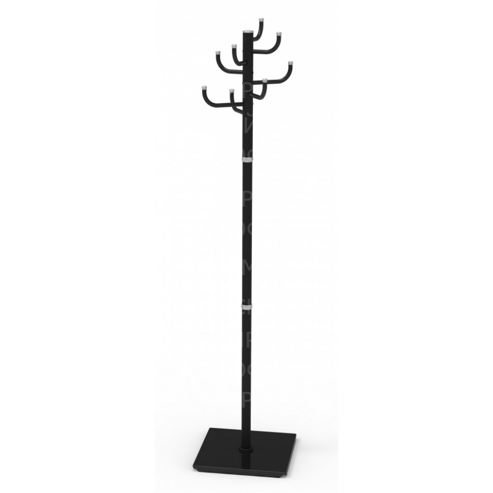 Вешалка напольная Мажор 2 выполнена из оцинкованной стали с полимерным покрытием, утяжеленной квадратное основание, 8 крючков из трубы диаметром 16 мм для верхней одежды равномерно распределены по окружности стойки диаметром 38 мм. Поставляется в разобранном виде, в картонной таре.