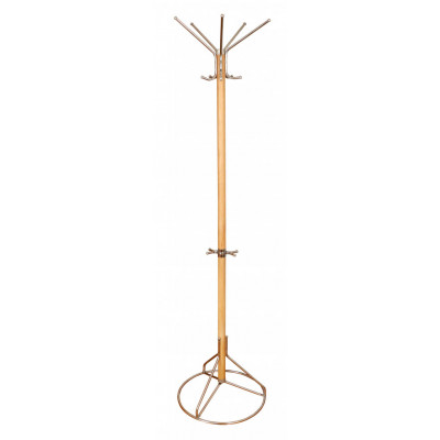 Вешалка для одежды напольная на 5 крючков.Выполнена из натурального дерева. Поставляется в разобранном виде в картонной таре. Крючки и основание вешалки напольной выполнены из серого металлика.