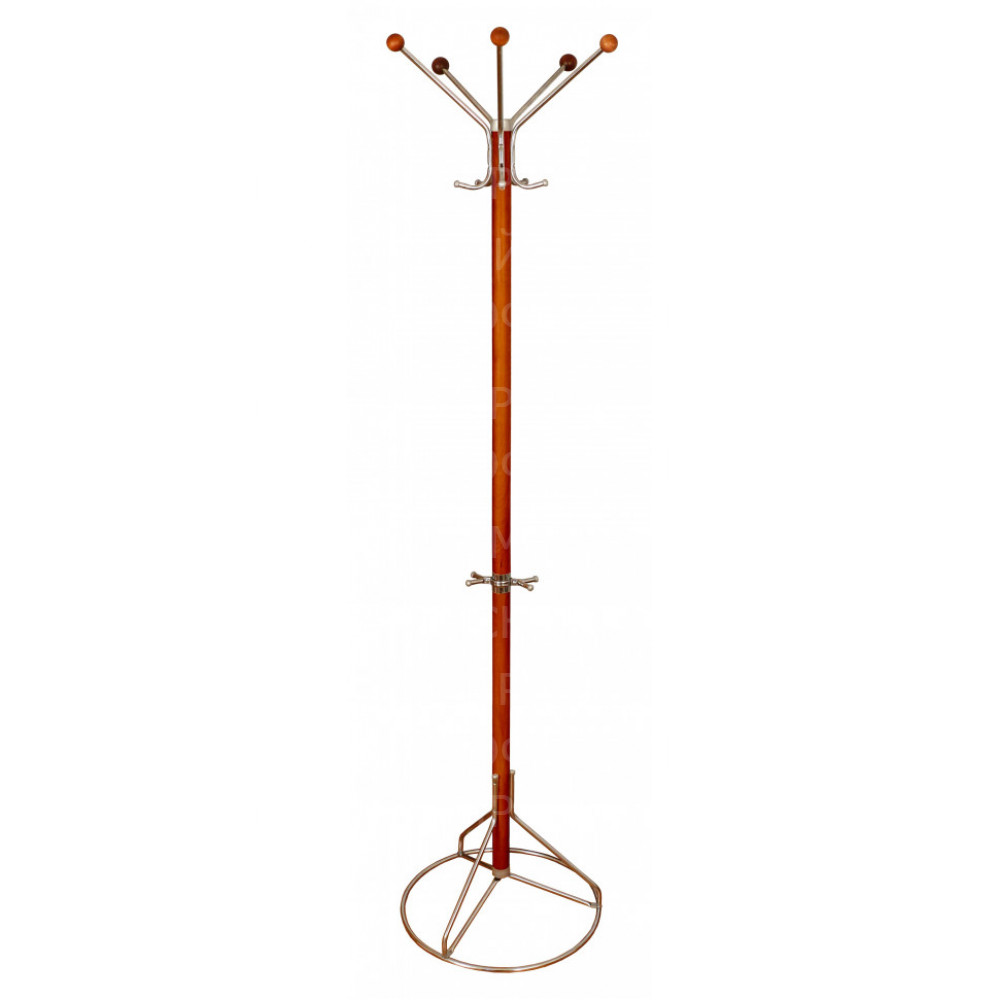 Вешалка напольная на 5 крючков.Выполнена из натурального дерева. Поставляется в разобранном виде в картонной таре. Крючки и основание вешалки напольной выполнены из серого металлика.