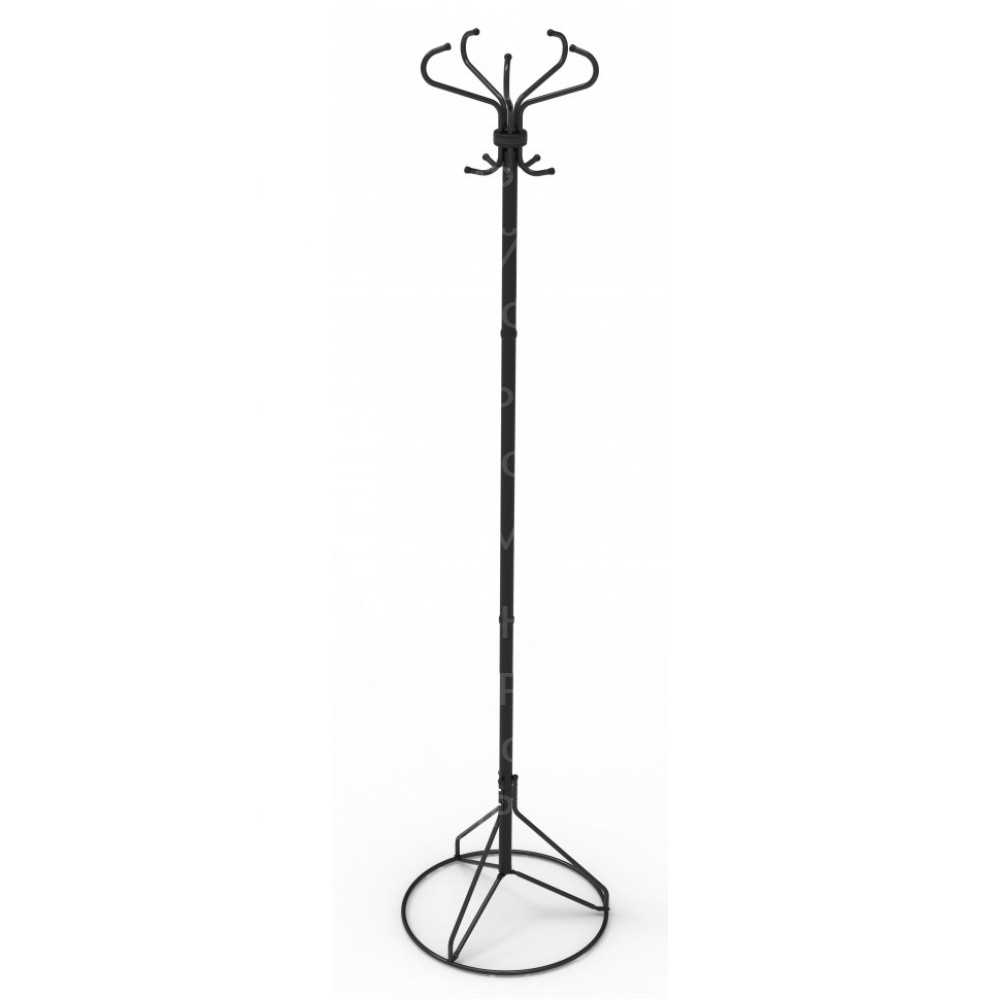 Вешалка напольная на 5 крючков. Выполнена из оцинкованной стали с полимерным покрытием. Поставляется в разобранном виде в картонной таре. Элементы вешалки покрыты защитной полиэтиленовой пленкой. O 455 Н=1850