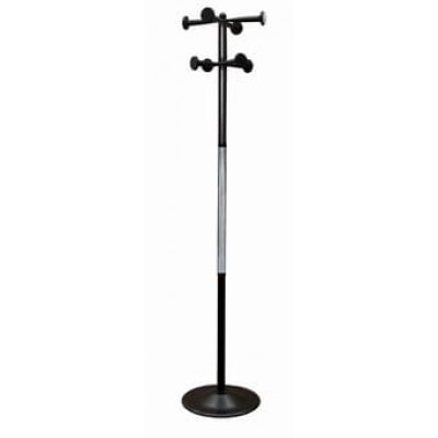 Вешалка напольная выполнена оцинкованной стали с полимерным покрытием со вставкой из зеркальной нержавеющей стали. Вешалка поставляется в разобранном виде. Базовый цвет: черный + хром